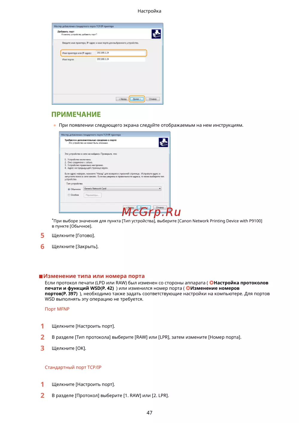 Canon i-SENSYS MF744Cdw [55/799] Изменение типа или номера порта