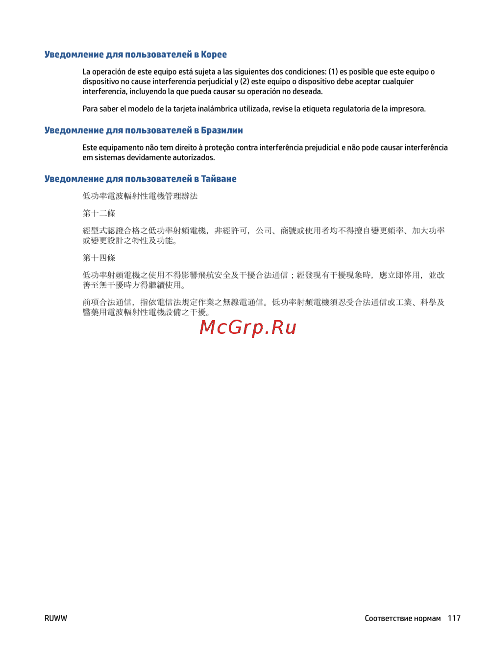 - Уведомление для пользователей в тайване 5 ггц p.122