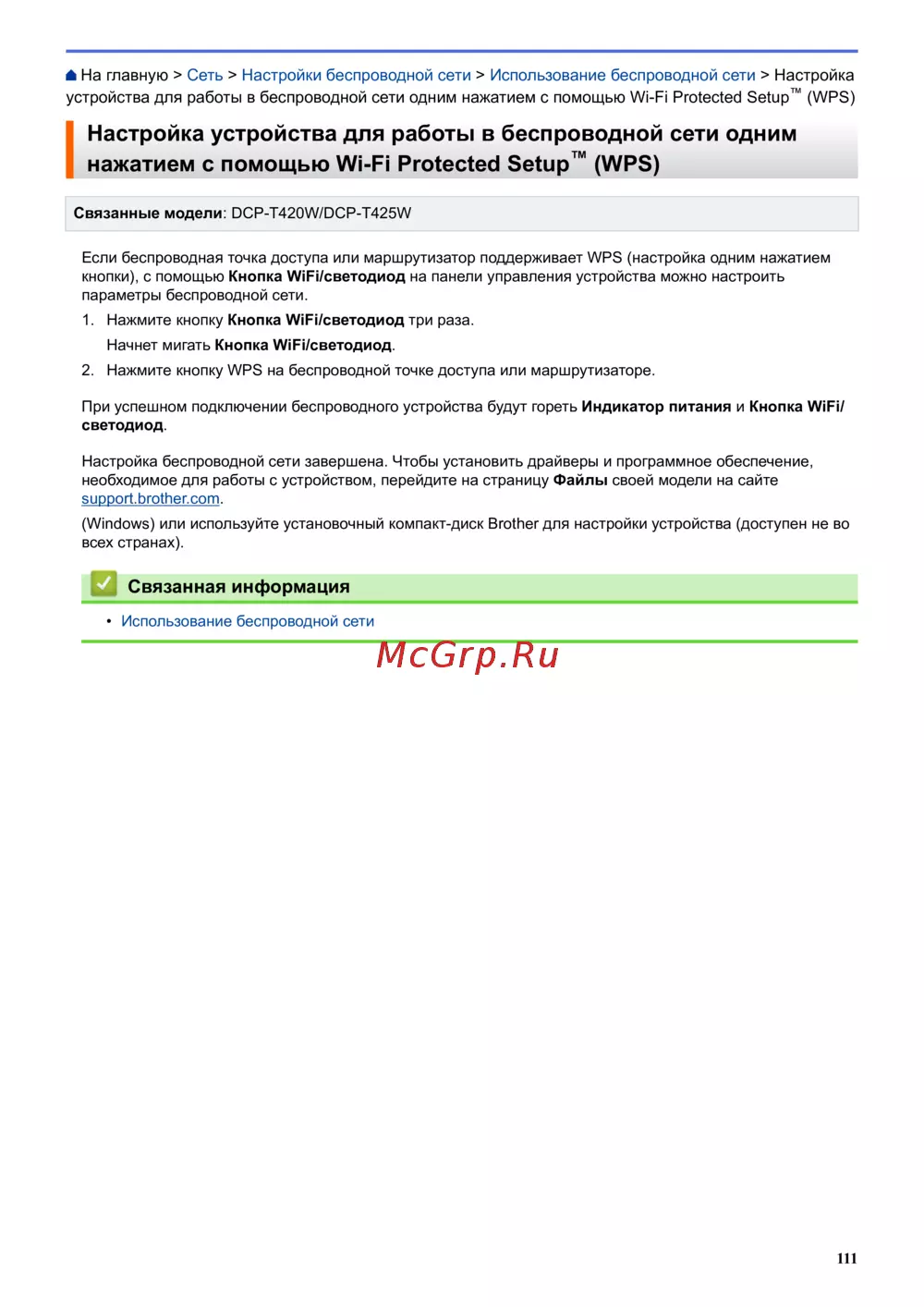 Brother DCP-T425W InkBenefit Plus [115/240] Связанная информация