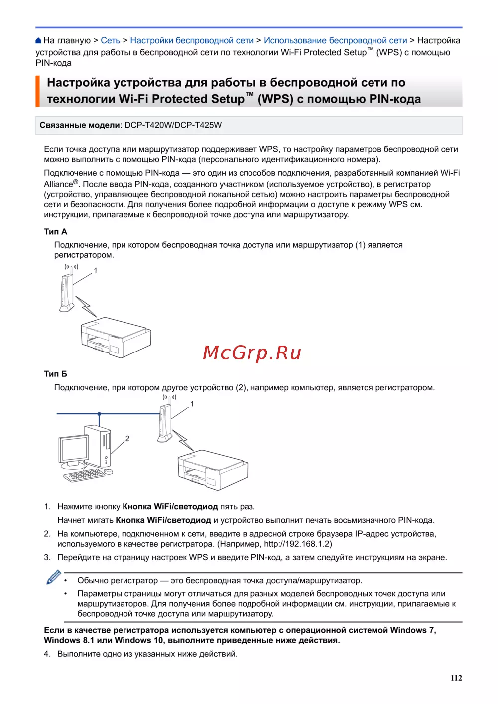 Brother DCP-T425W InkBenefit Plus [116/240] Wps с помощью pin кода