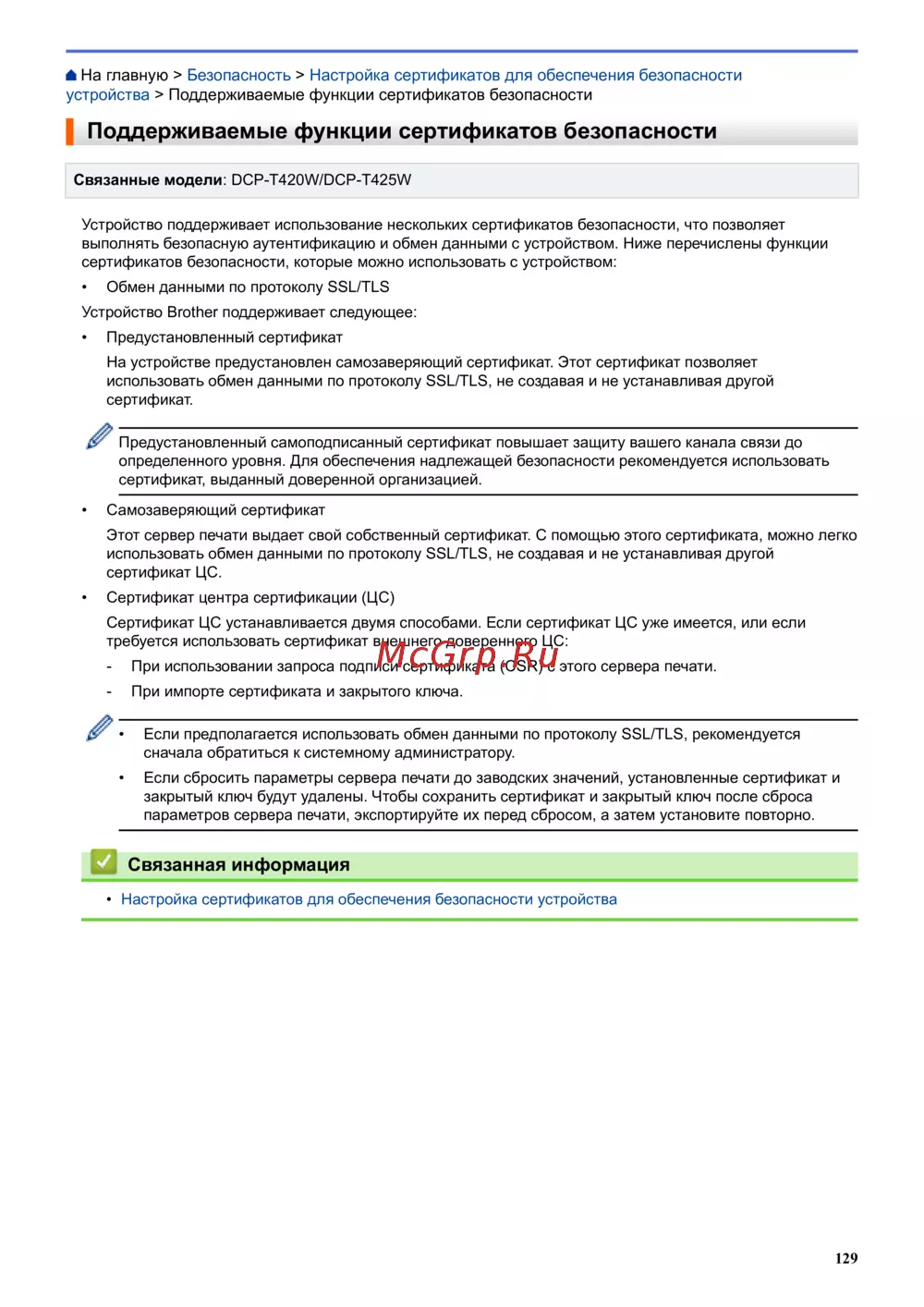 Brother DCP-T425W InkBenefit Plus [133/240] Связанная информация