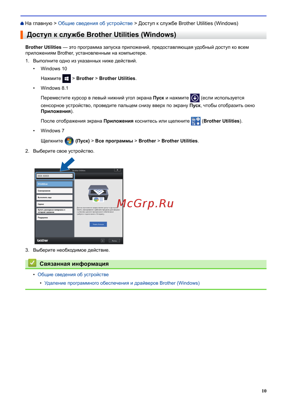 приложениям Brother, установленным на компьютере.