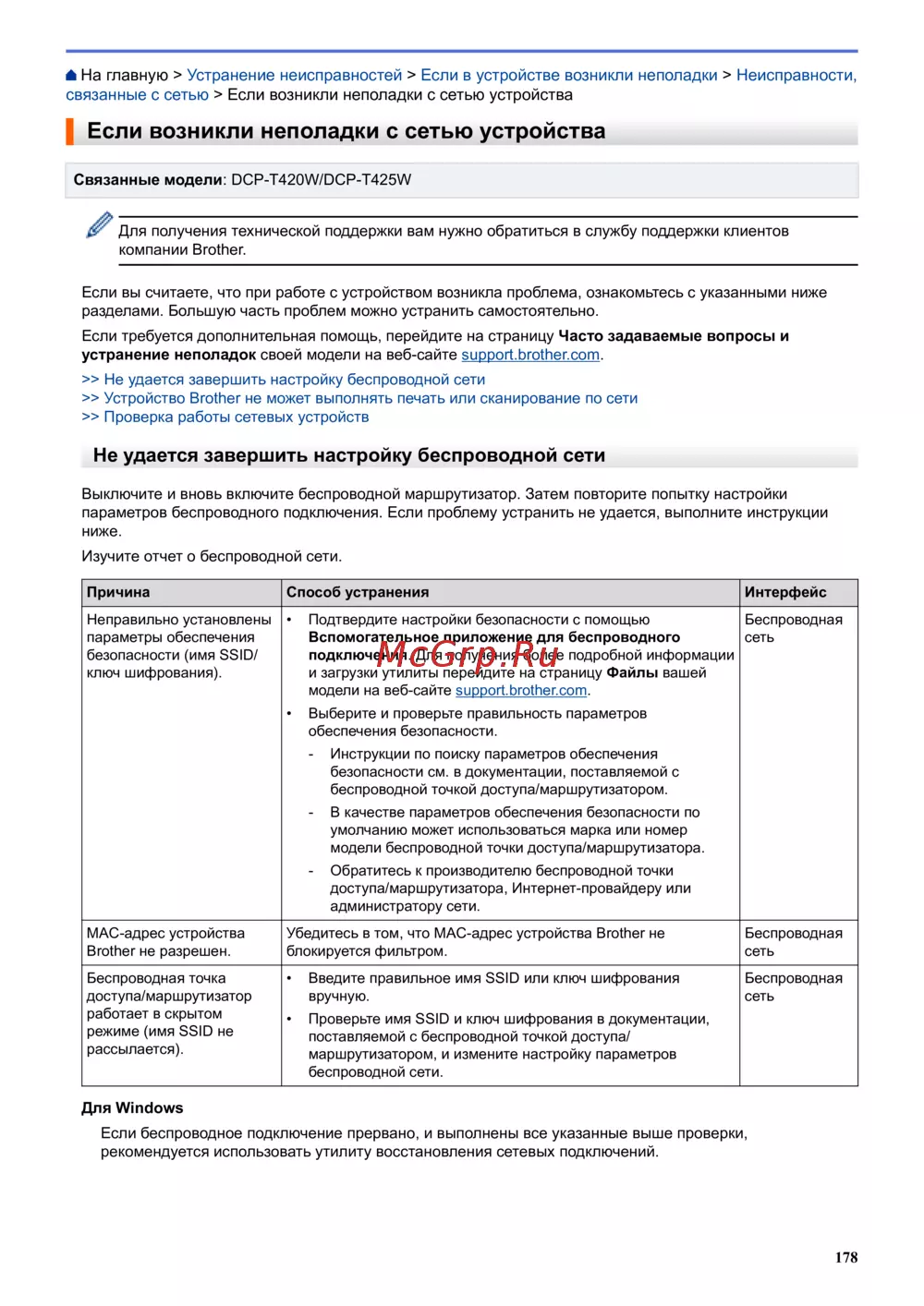 связанные с сетью > Если возникли неполадки с сетью устройства