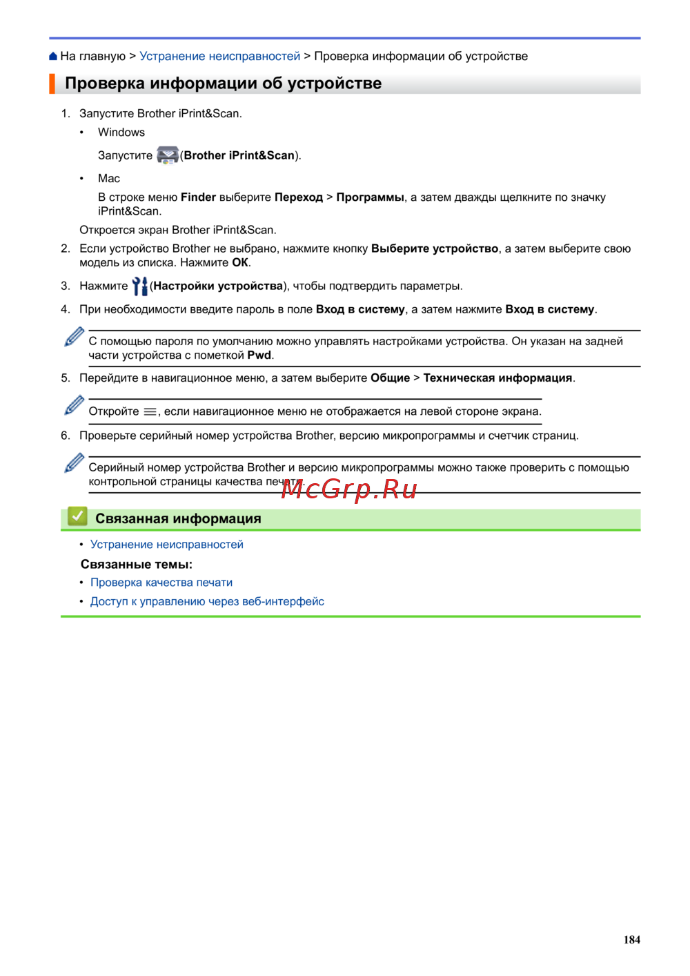 На главную > Устранение неисправностей > Проверка информации об устройстве