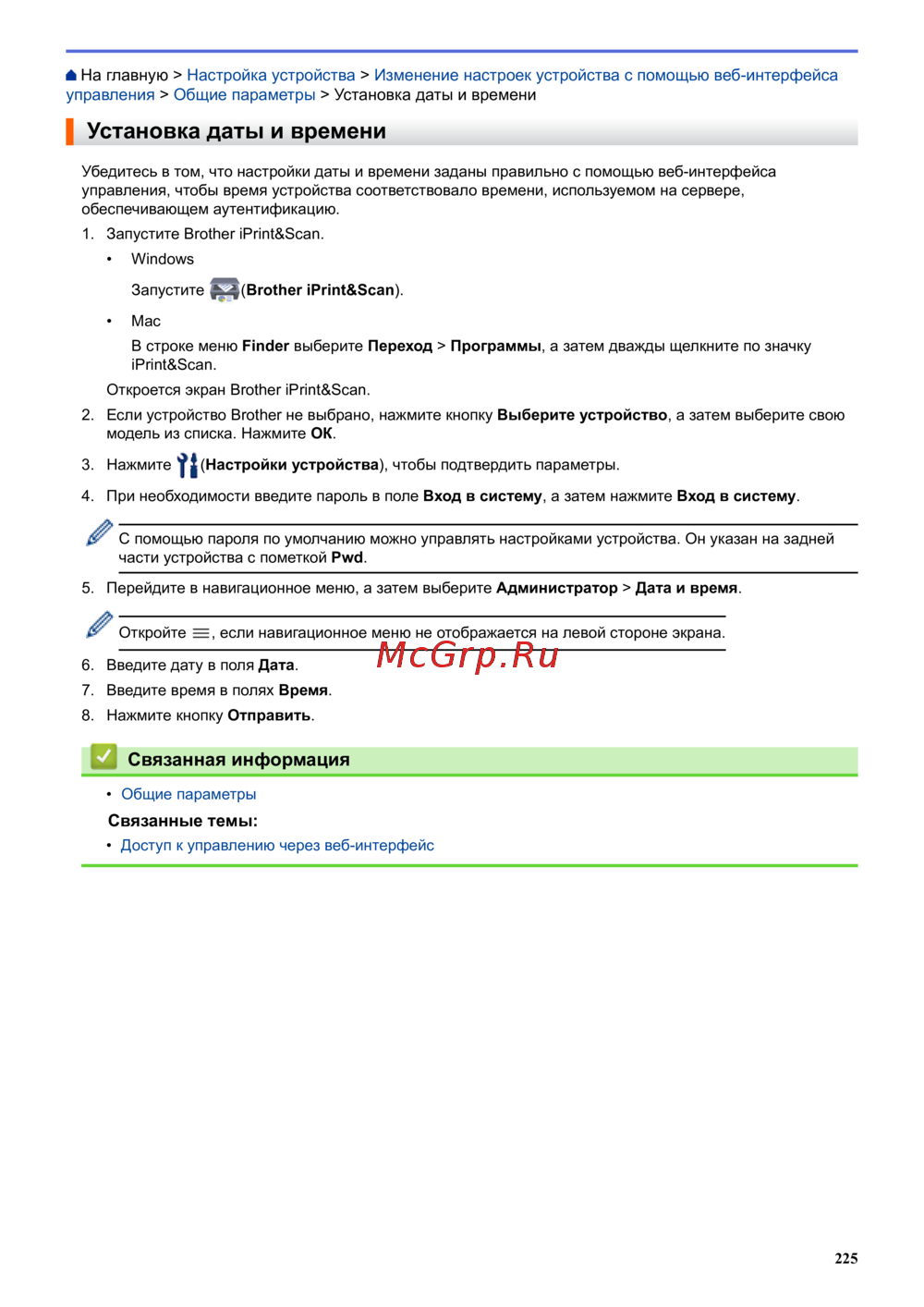 - Запуск из веб браузера dcp t420w dcp t425w p.223