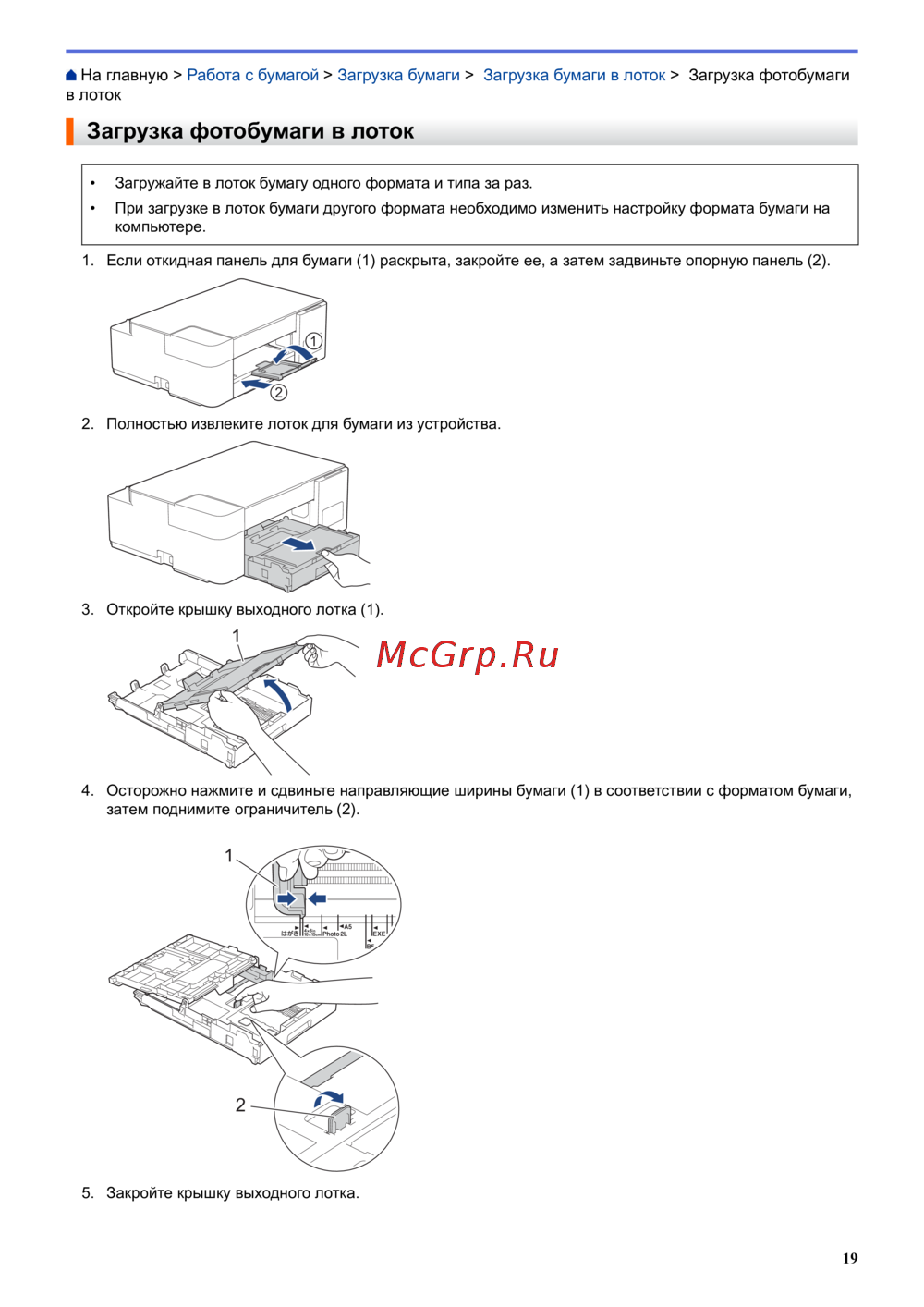 На главную > Работа с бумагой > Загрузка бумаги > Загрузка бумаги в лоток > Загрузка фотобумаги