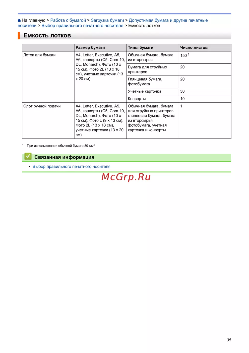 носители > Выбор правильного печатного носителя > Емкость лотков