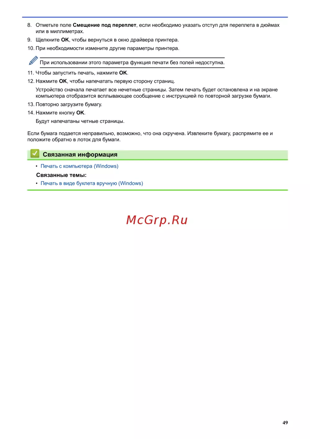 • Печать в виде буклета вручную (Windows)