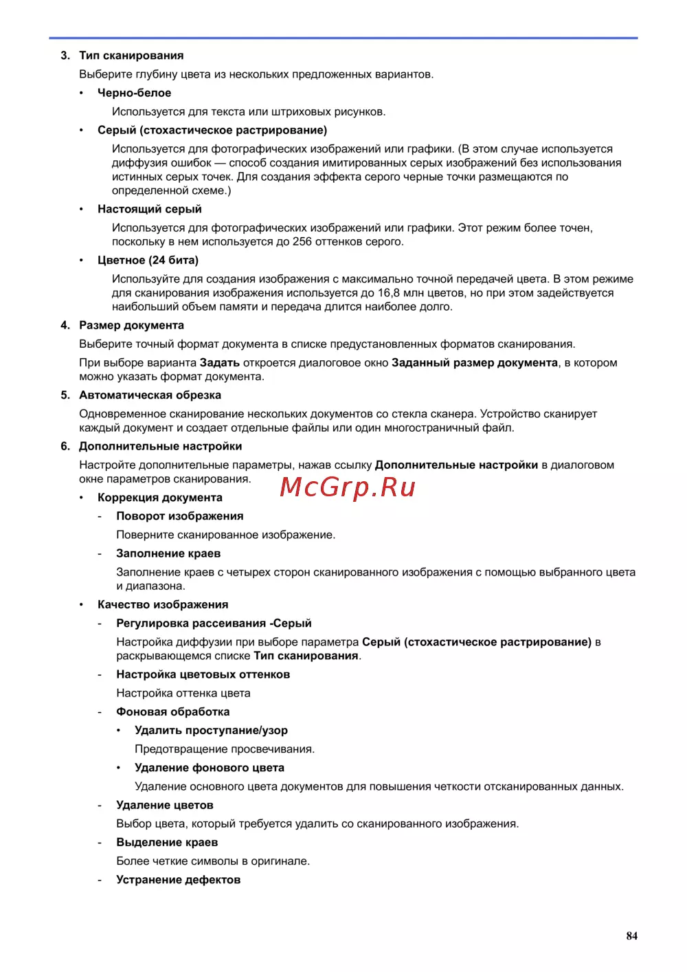 Brother DCP-T425W InkBenefit Plus — настройки сканирования: типы цвета, размер и коррекция изображения [88/240]