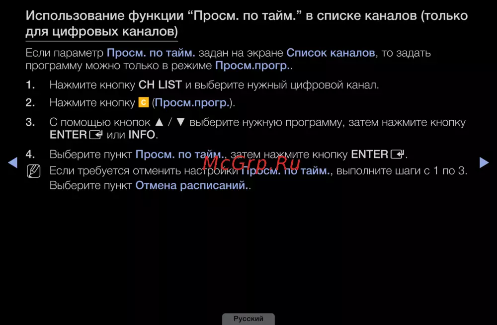 - Использование функции просм по тайм в списке каналов только для цифровых каналов p.12
