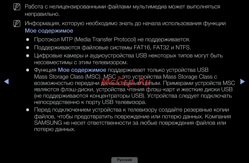 SAMSUNG не несет ответственности за любые повреждения файлов или