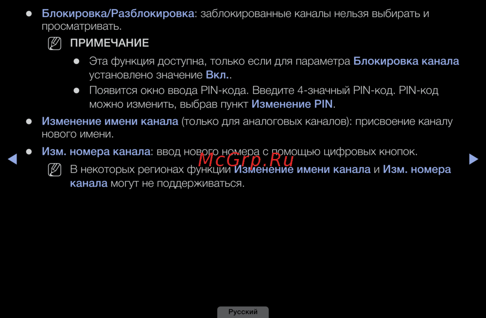 В некоторых регионах функции Изменение❑имени❑канала и Изм.❑номера❑