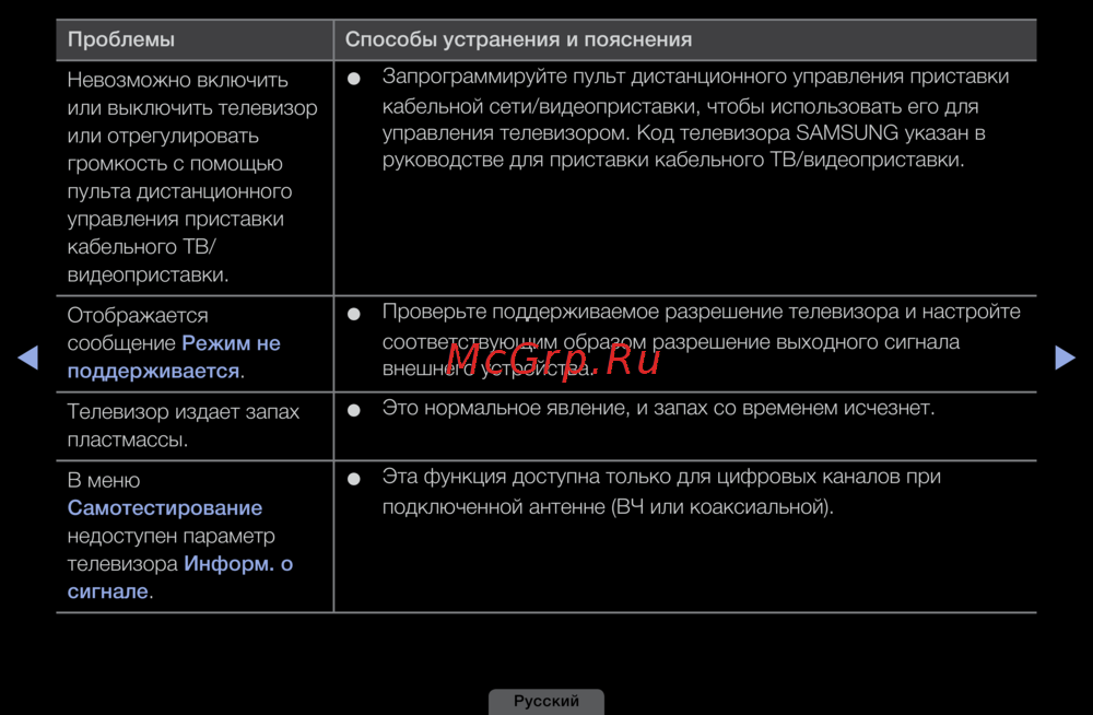 - При возникновении вопросов связанных с работой телевизора сначала просмотрите следующий список если ни один из перечисленных советов не поможет устранить неисправность посетите веб узел www samsung com и выберите пункт поддержка p.172