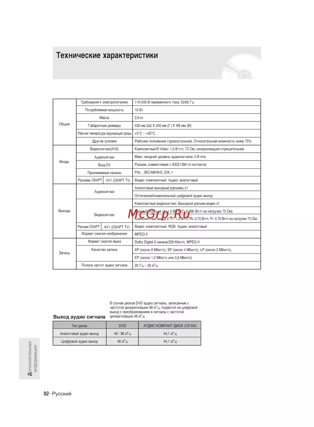 Samsung DVD-R150 K [92/94] Технические характеристики