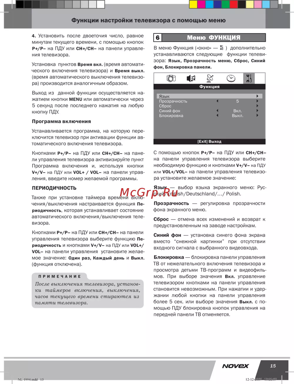 Novex NL 1994 [16/21] Функции настройки телевизора с помощью меню
