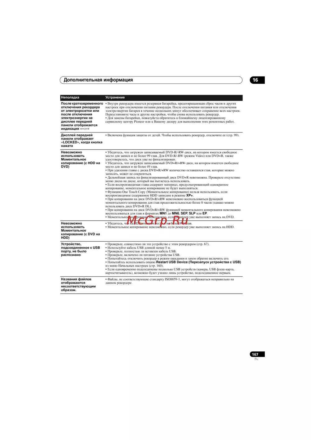 - Устранение неполадок p.165