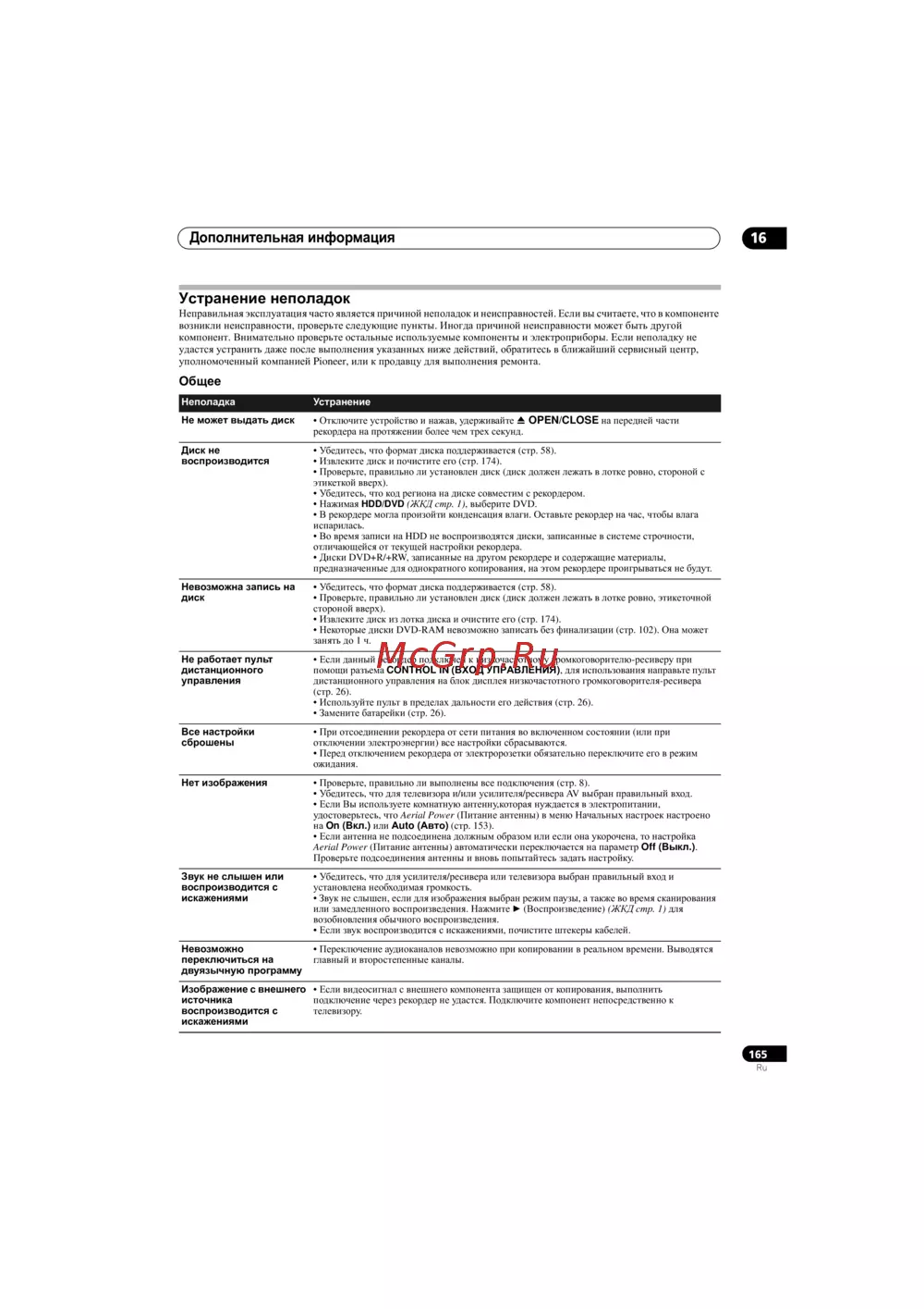 Pioneer SX-LX70 SW [165/179] Устранение неполадок