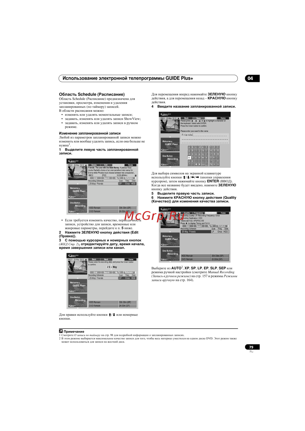 1 Смотрите О записи по таймеру на стр. 98 для подробной информации о запланированных записях.