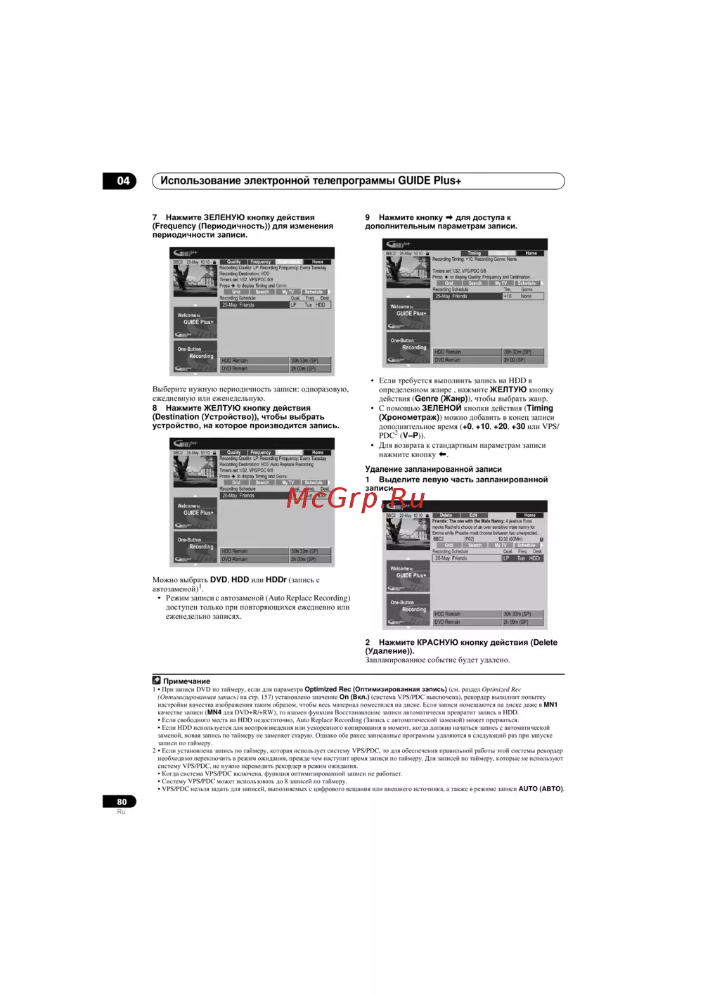 заменой, новая запись по таймеру не заменяет старую. Однако обе ранее записанные программы удаляются в