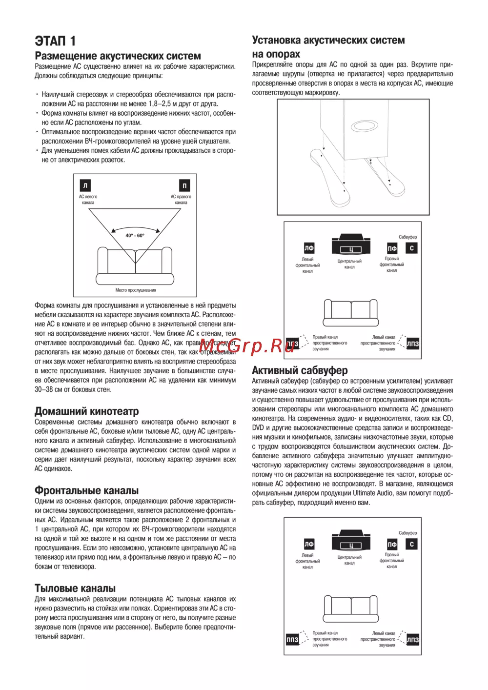 - Благодарим вас за приобретение акустических систем производства компании ultimate audio мы сотрудники ultimate audio стремимся со здавать акустические системы объединяющие в себе самые лучшие технологические решения для стереопары или многоканальной системы домашнего кинотеатра p.1