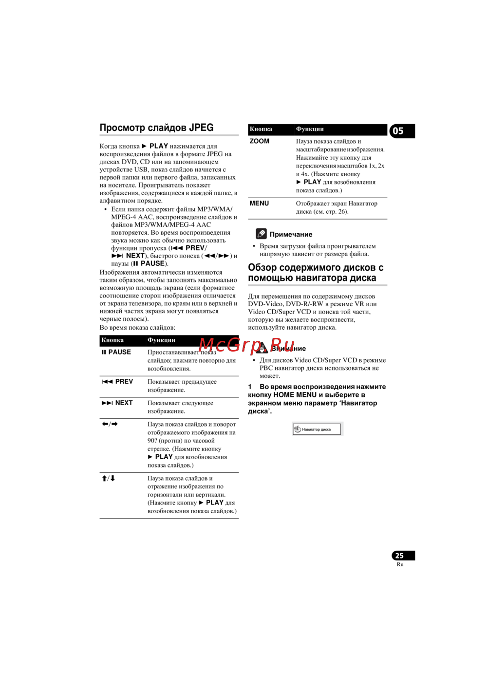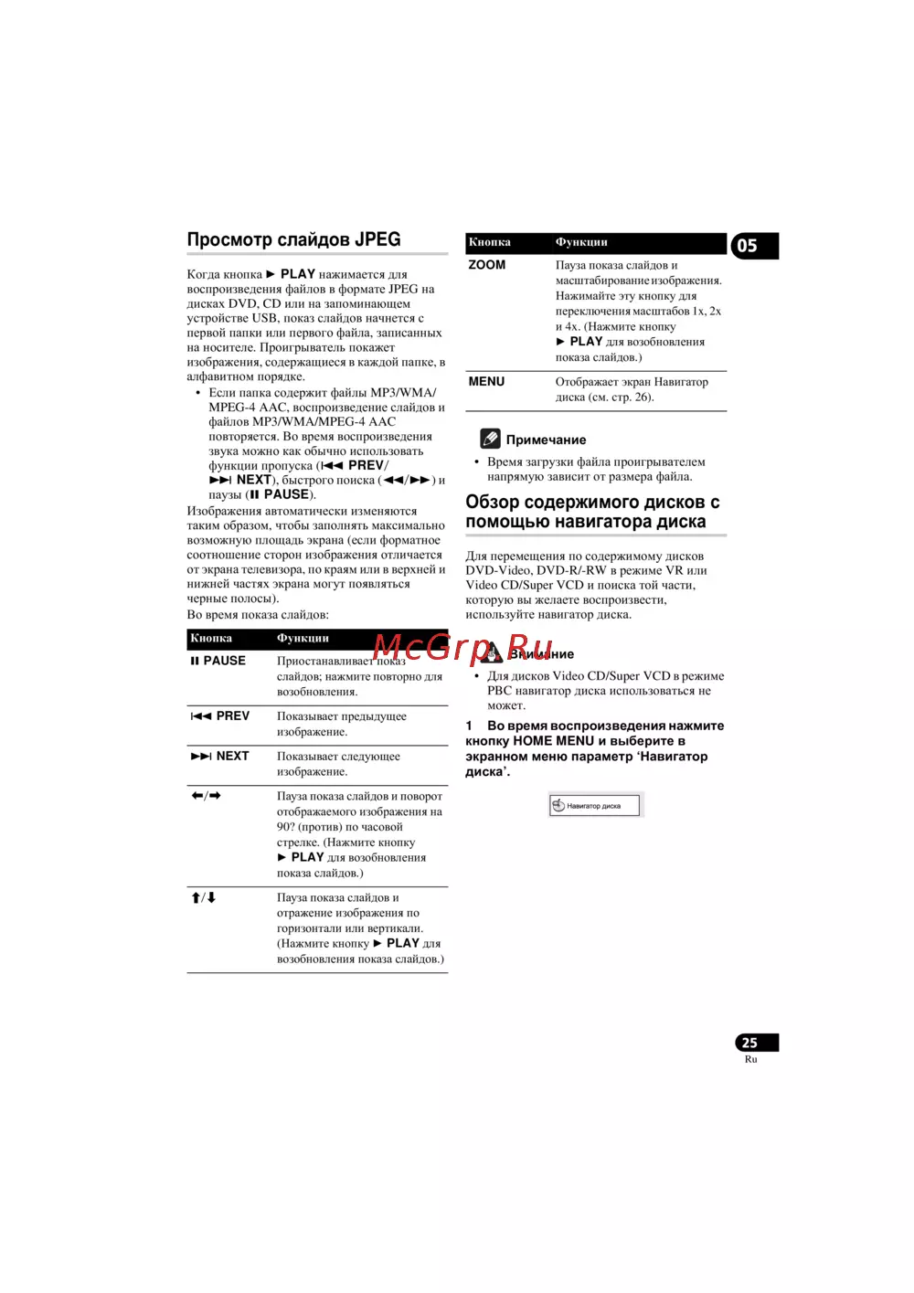 - Обзор содержимого дисков с помощью навигатора диска p.25