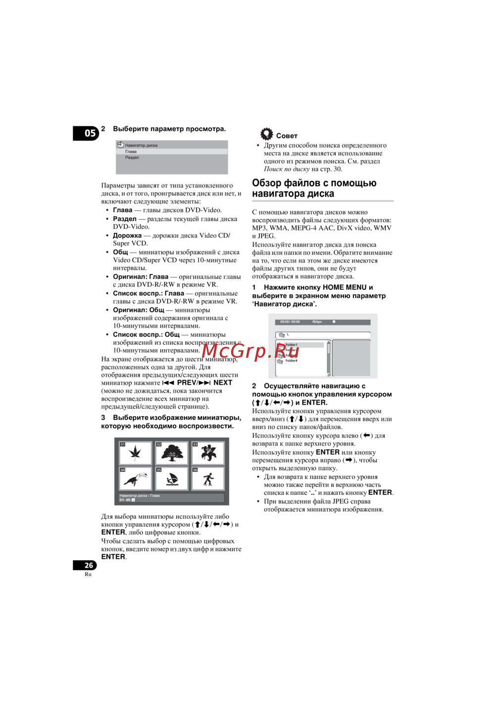 - Обзор содержимого дисков с помощью навигатора диска p.25