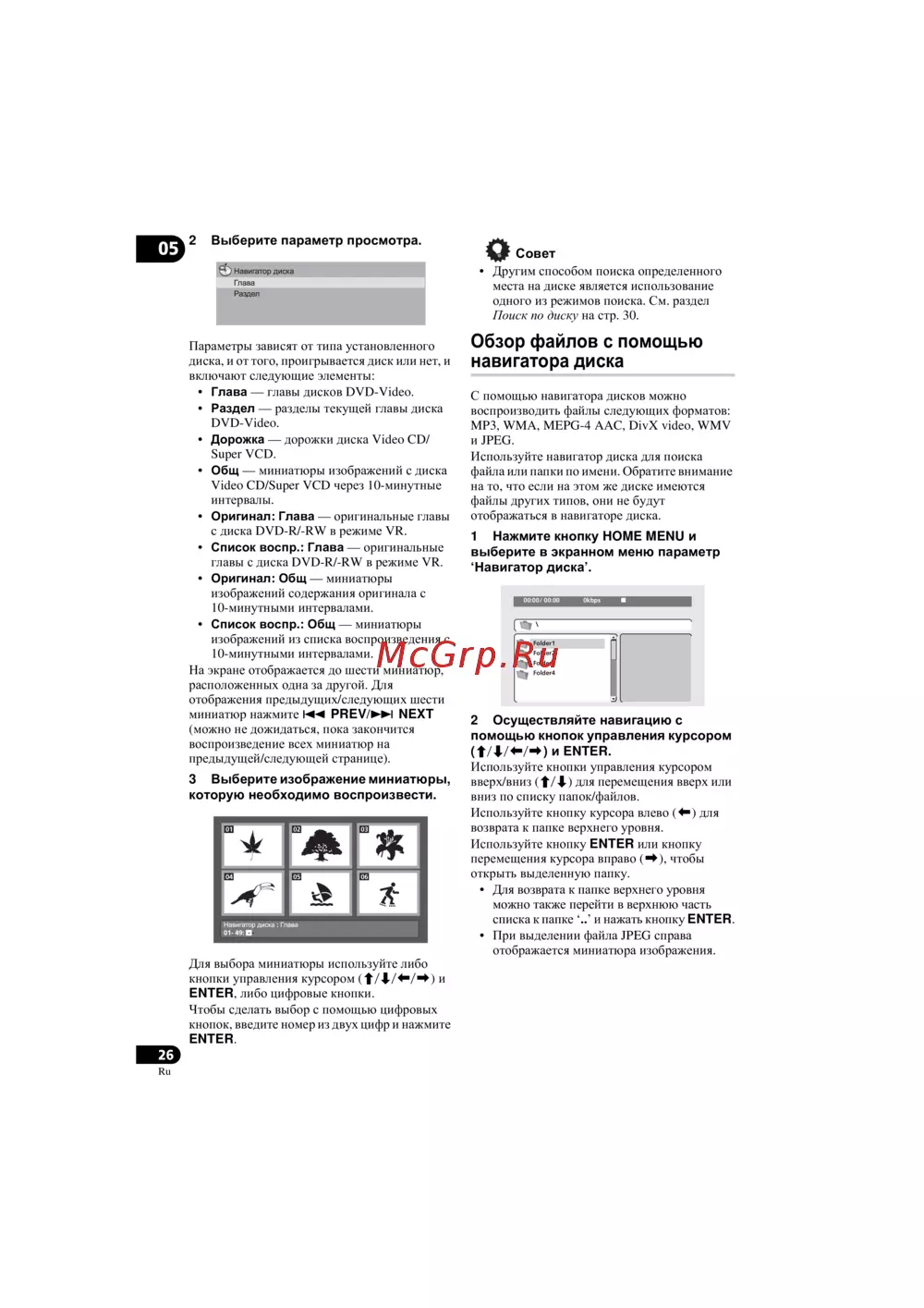 Узнайте, как выбрать параметры просмотра дисков и использовать навигатор для воспроизведения различных форматов файлов. Подробные инструкции и советы.