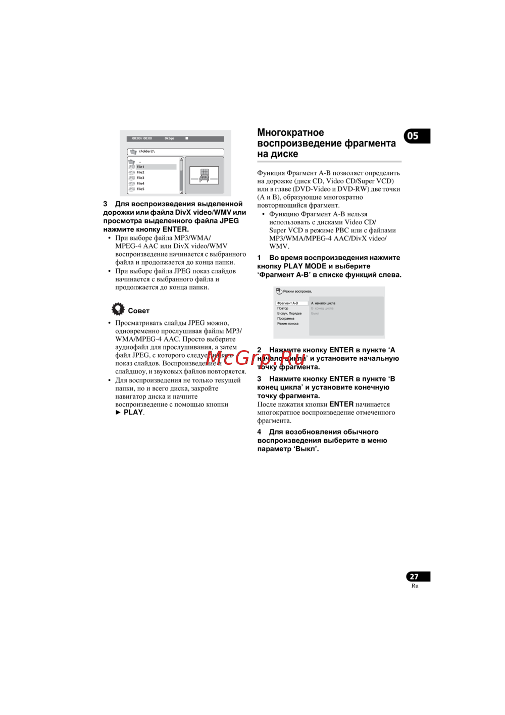 - Вы можете осуществлять поиск на диске dvd video по номеру главы или раздела или же по времени на дисках cd и video cd super vcd по номеру дорожки или по времени на дисках divx video wmv по времени p.30