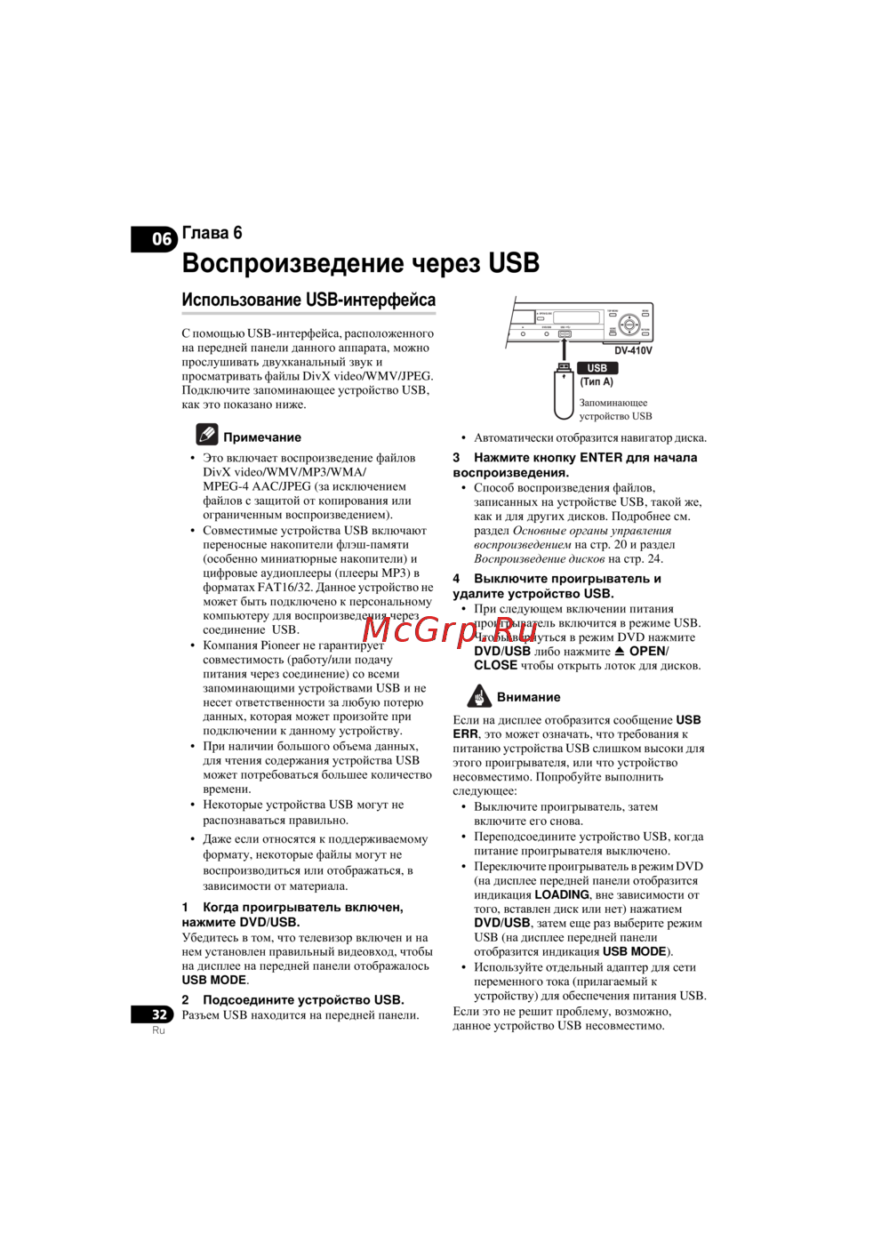 Pioneer DV-410 V K — воспроизведение медиафайлов через USB: инструкция и советы [32/52]