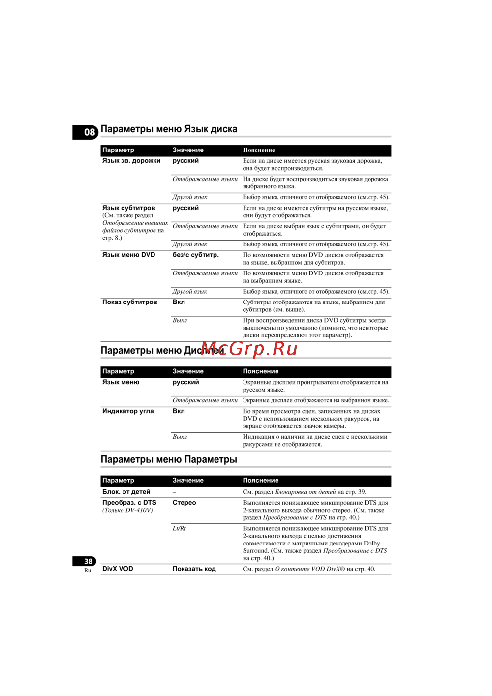 ![Pioneer DV-410 V K [38/52] Параметры меню язык диска](/views2/1089487/page38/bg26.png)