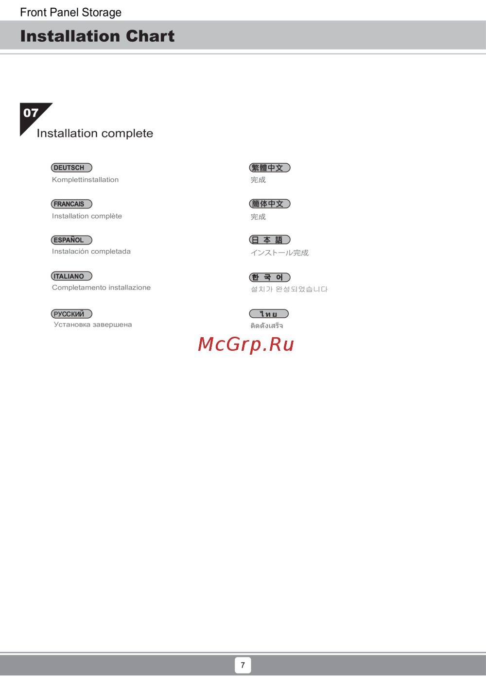 - Installation chart p.7