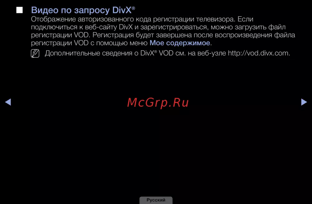 Дополнительные сведения о DivX® VOD см. на веб-узле http://vod.divx.com.