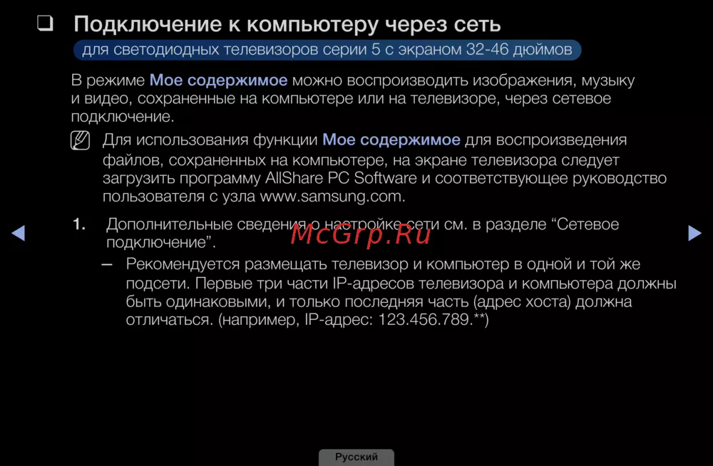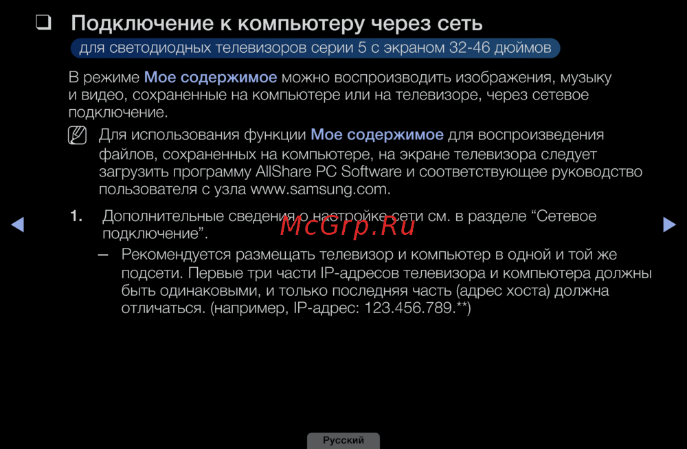 Samsung UE32D5000PW — подключение светодиодного телевизора к компьютеру через сеть [125/191]