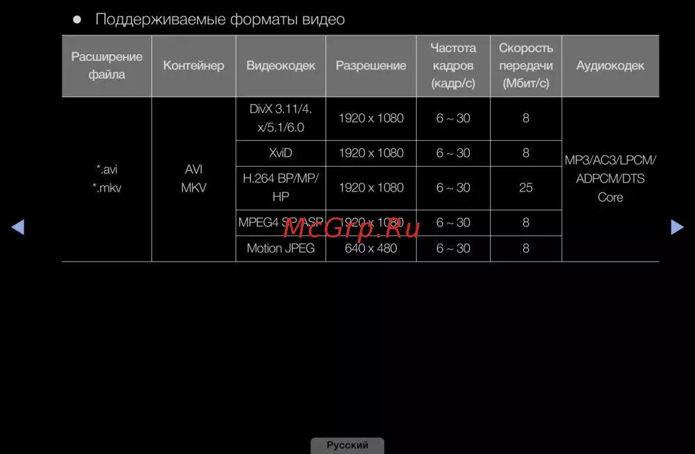 Samsung UE32D5000PW [131/191] Поддерживаемые форматы видео