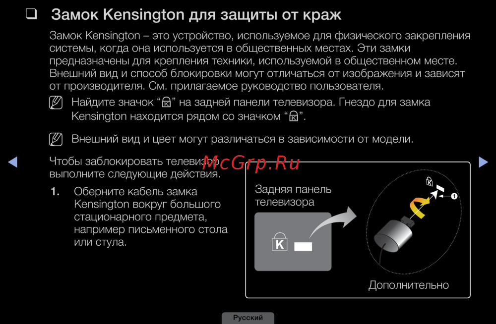 Samsung UE32D5000PW — замок для защиты техники от кражи в общественных местах [167/191]