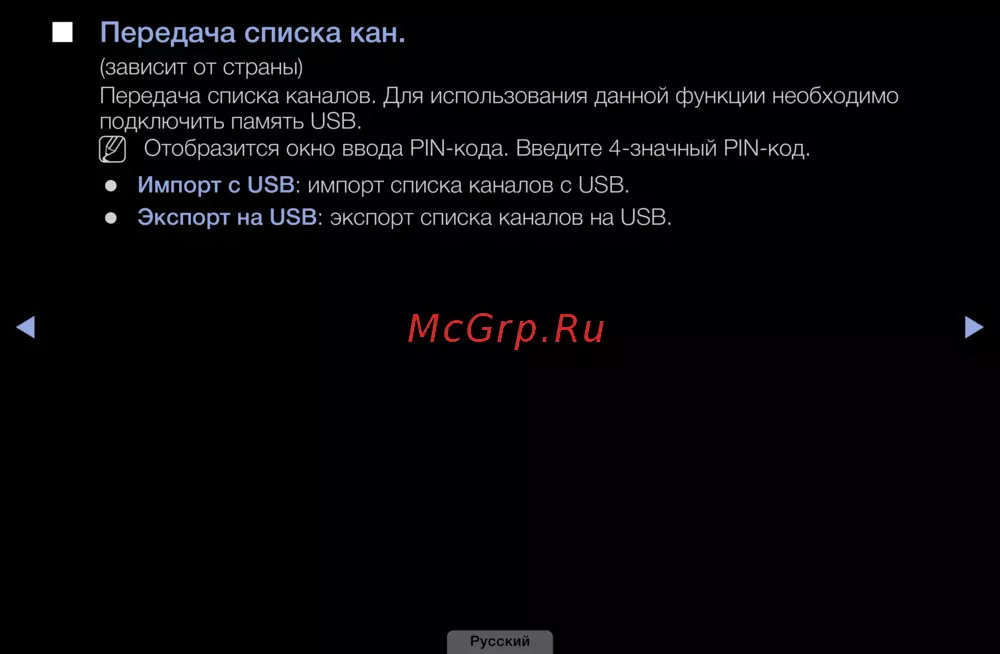 Экспорт❑на❑USB: экспорт списка каналов на USB.