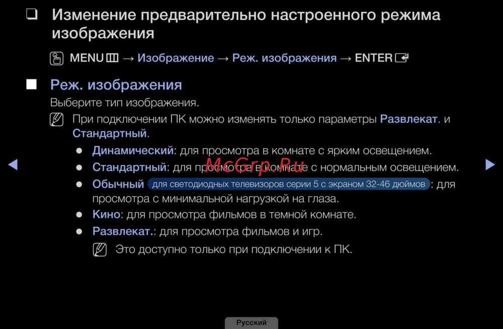 Стандартный: для просмотра в комнате с нормальным освещением.