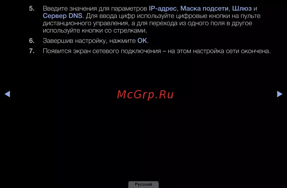 Сервер❑DNS. Для ввода цифр используйте цифровые кнопки на пульте