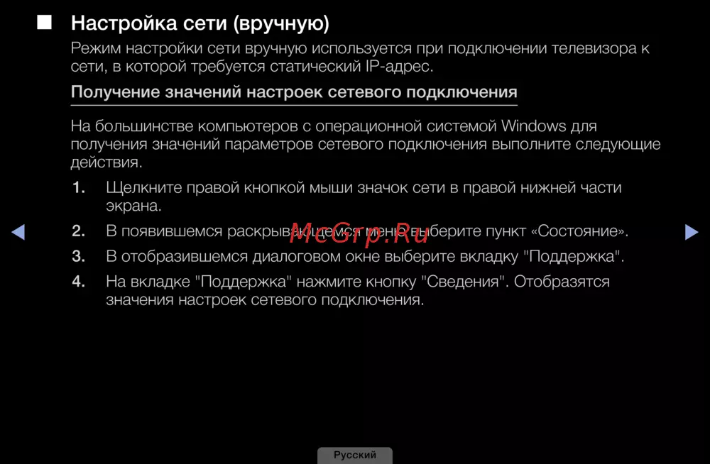 Узнайте, как вручную настроить сетевое подключение телевизора с использованием статического IP-адреса. Пошаговая инструкция для получения параметров подключения.