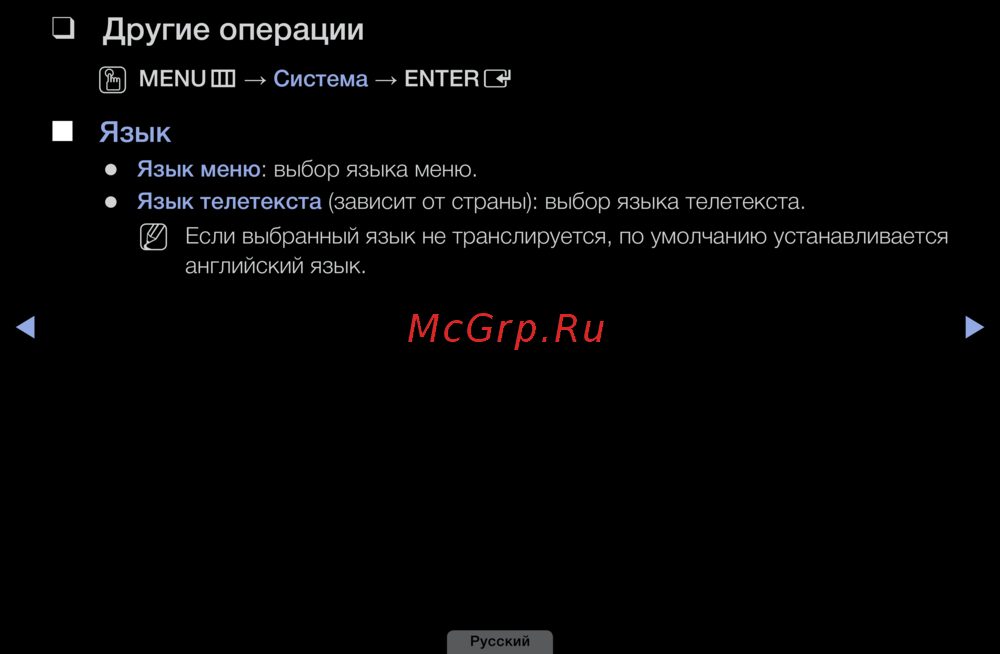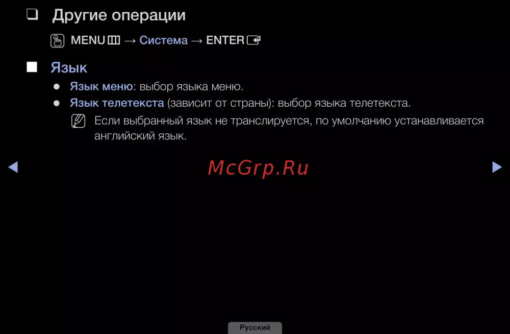 Язык❑телетекста❑(зависит от страны): выбор языка телетекста.