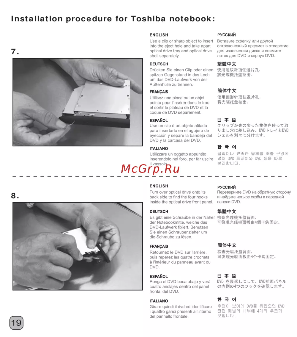 - For notebook computer from other brands please also refer to their user manuals for information on optical drive removal p.17