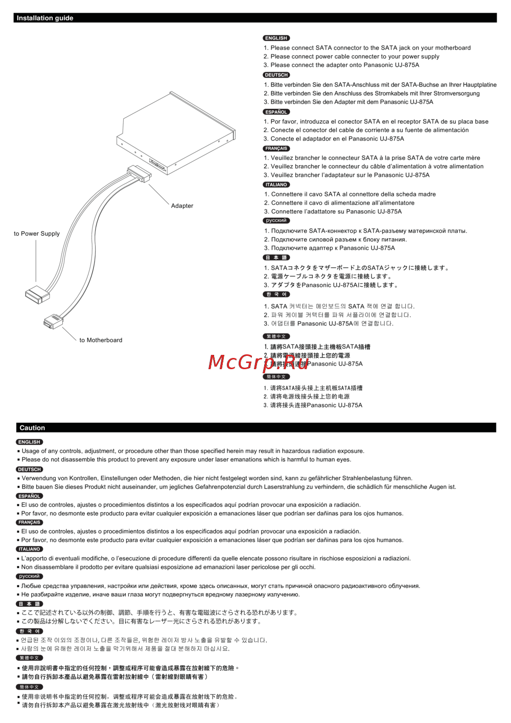 请勿自行拆卸本产品以避免暴露在激光放射线中(激光放射线对眼睛有害)