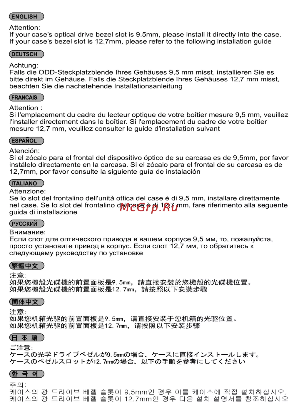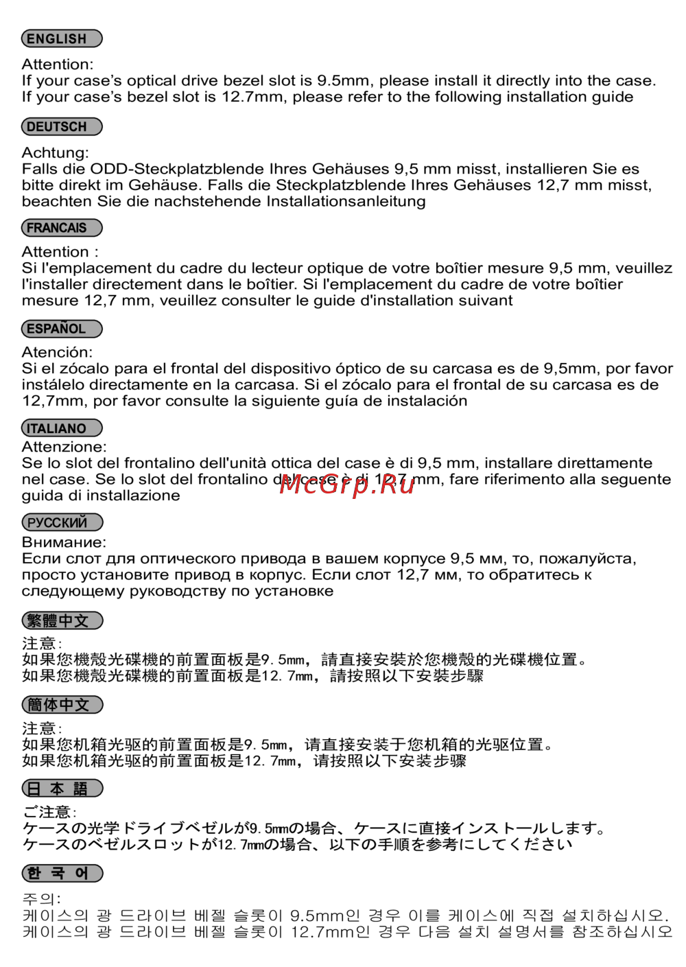 If your case’s optical drive bezel slot is 9.5mm, please install it directly into the case.