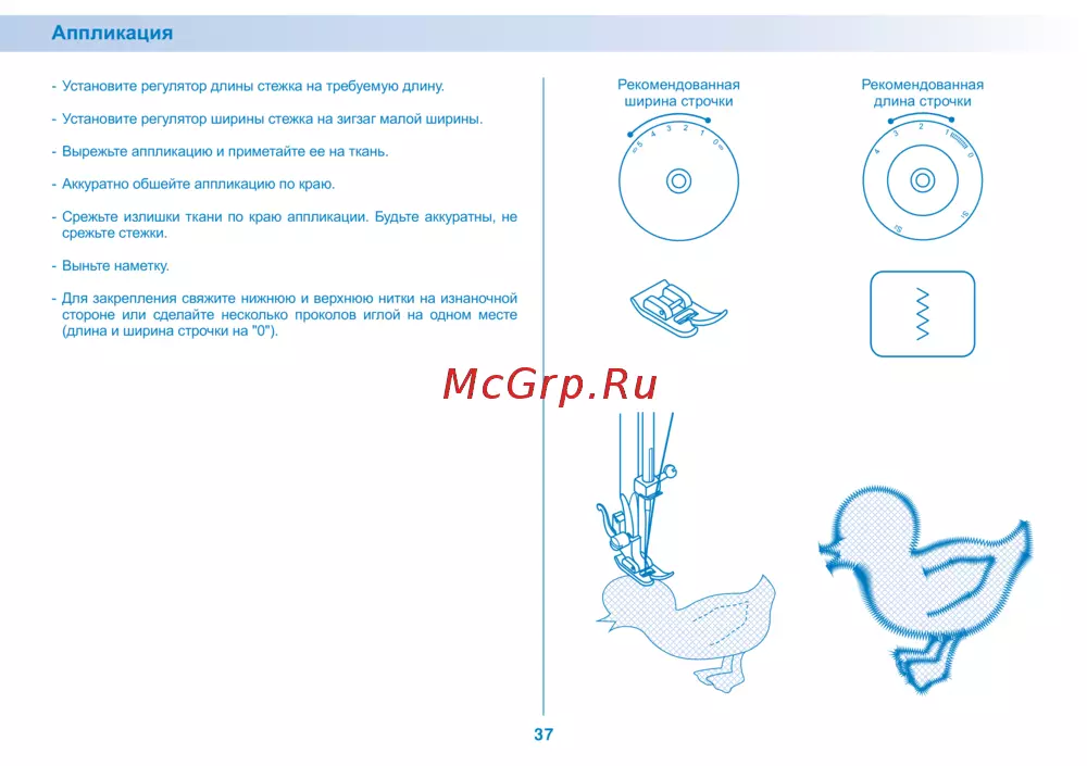 - Установите регулятор ширины стежка на зигзаг малой ширины.