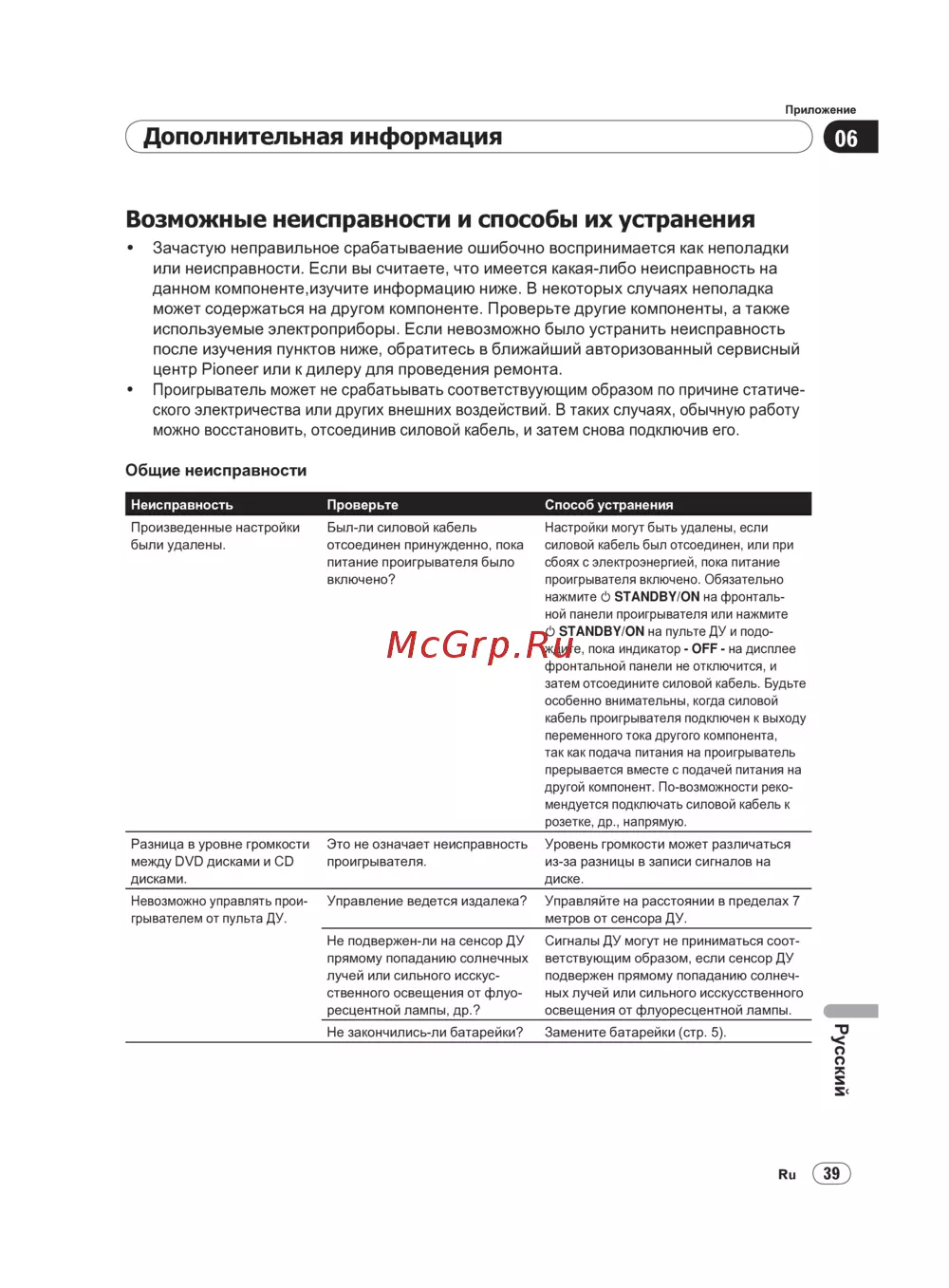 Pioneer DV-420V-K — решение проблем с проигрывателем: неисправности и их устранение [39/54]