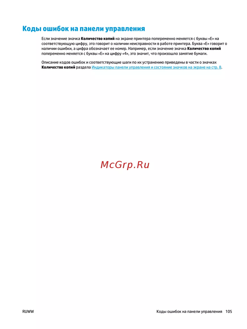 - Значение значка количество копий попеременно меняется с буквы е на цифру 5 в то же время все индикаторы на панели управления мигают p.22
