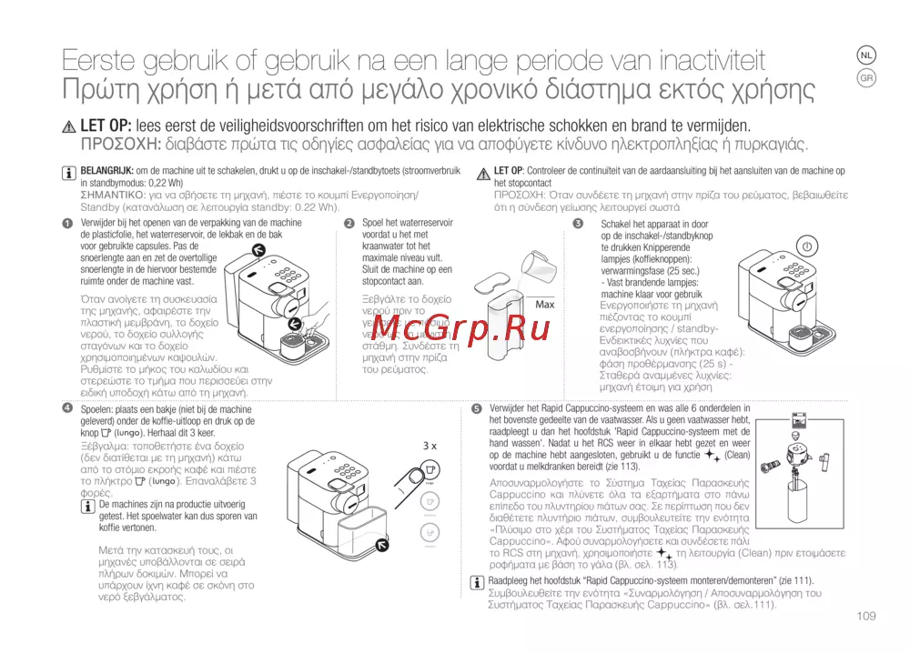 Delonghi EN650.W — handleiding voor eerste gebruik van koffiemachine [109/210]