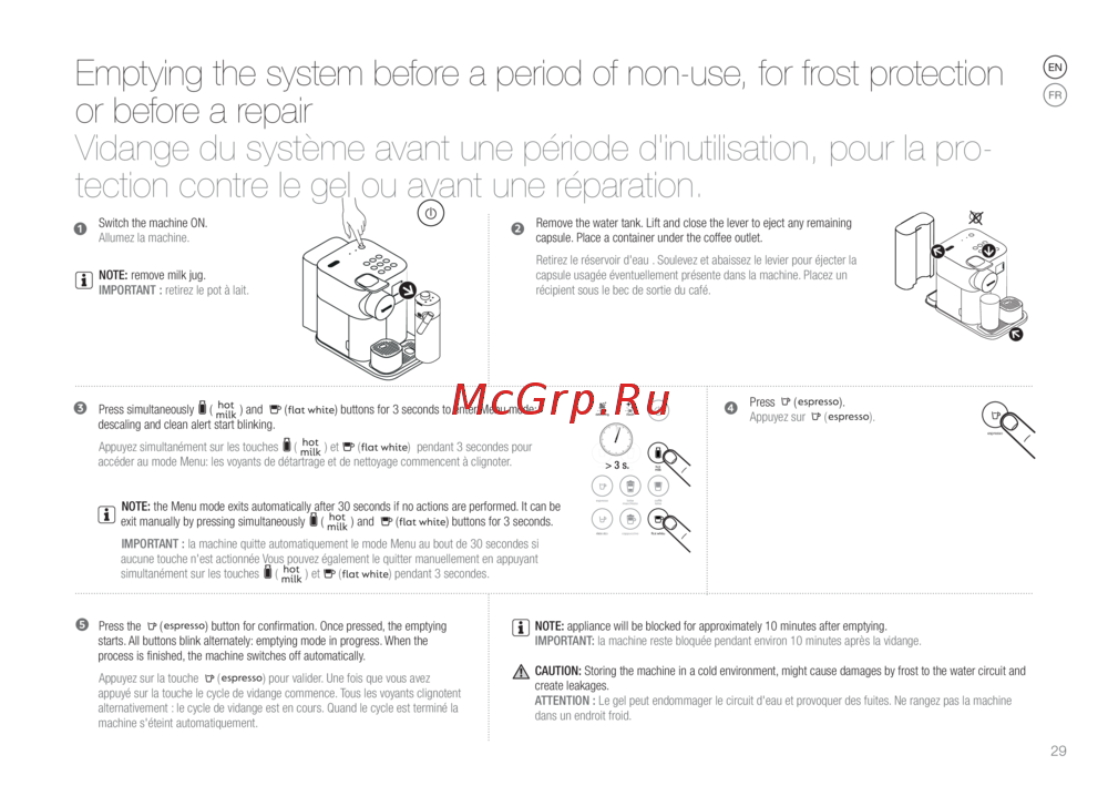 ![Delonghi EN650.W [29/210] Vidange du système avant une période d inutilisation pour la pro tection contre le gel ou avant une réparation](/views2/1751726/page29/bg1d.png)