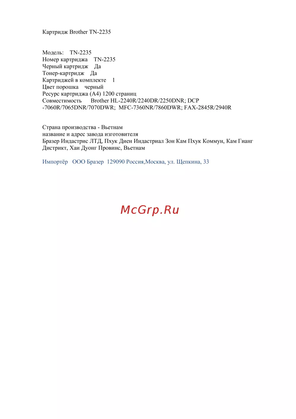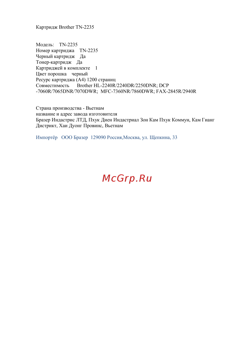 Brother TN2335 BlackИнструкция по эксплуатации -