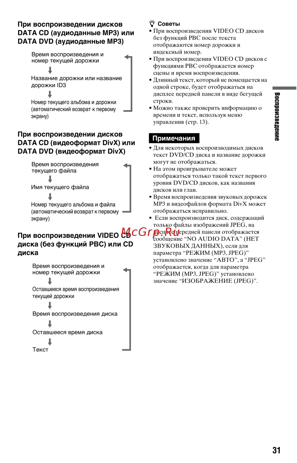 ![Sony DVP-K68 [31/88] При воспроизведении video cd диска без функций pbc или cd диска](/views2/1041963/page31/bg1f.png)